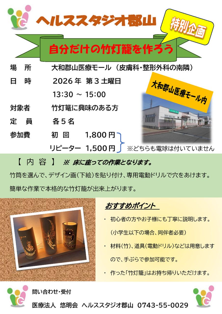 【2026年】《特別企画》自分だけの竹灯籠を作ろう(ヘルススタジオ郡山)