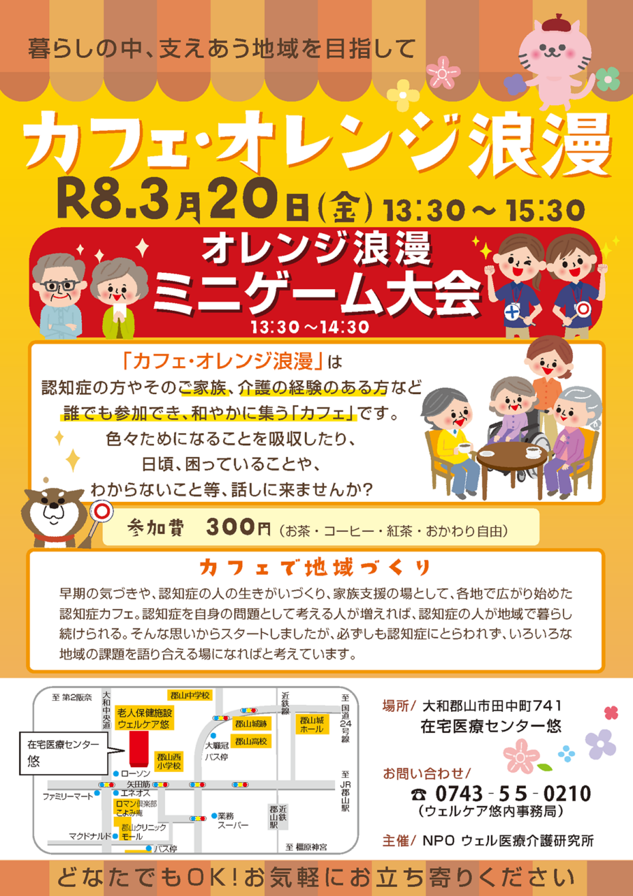 | 日時 | 2026年3月20日(金) カフェ・オレンジ浪漫:13:30~15:30 ミニゲーム大会:13:30~14:30 |