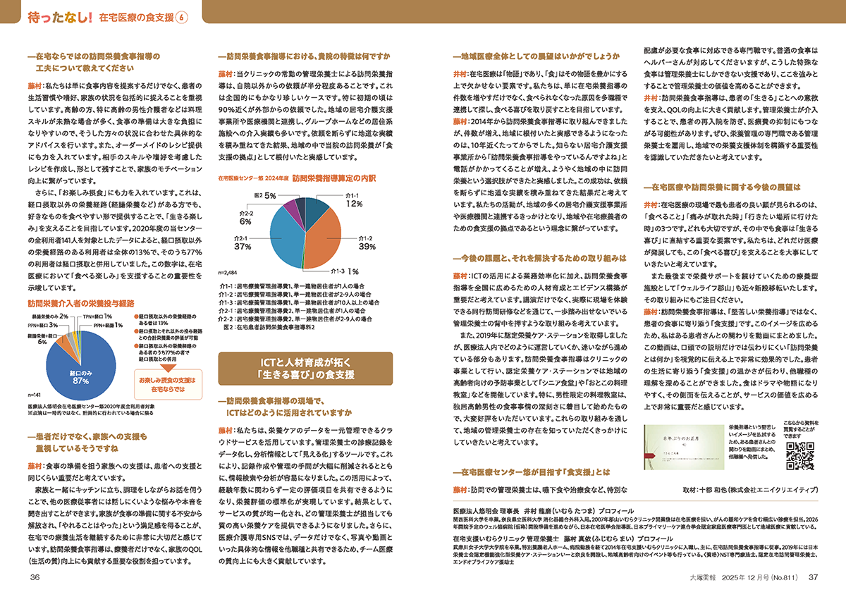 医療法人悠明会 理事長・井村龍磨、在宅支援いむらクリニック 管理栄養士・藤村真依の取り組みが、大塚ホールディングス株式会社発行『大塚薬報』2025年12月号(No.811)に掲載されました。